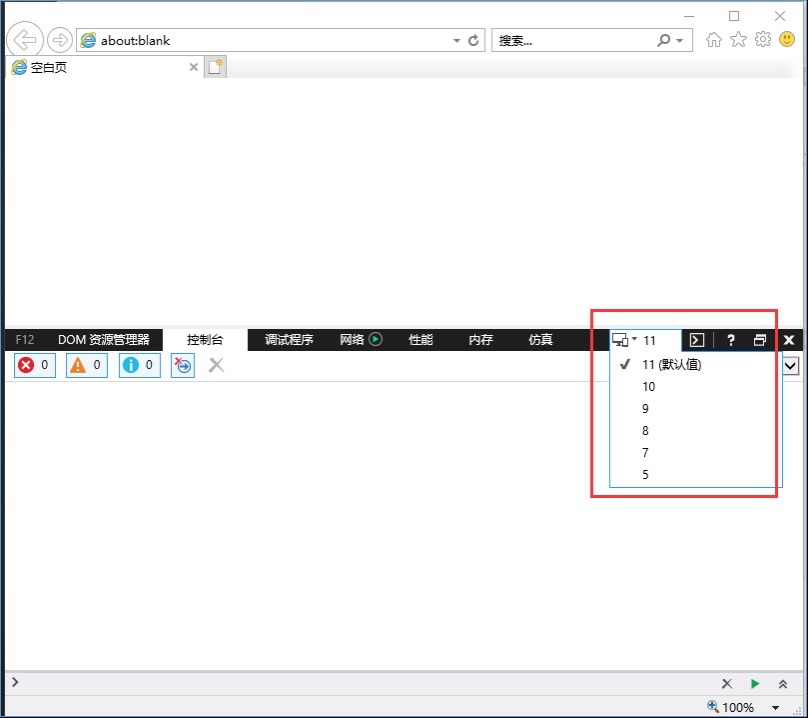 r打开IE浏览器,点击“F12”键,会出现浏览器模式设置,要求此处设置的版本必须与浏览器实际版本一致。