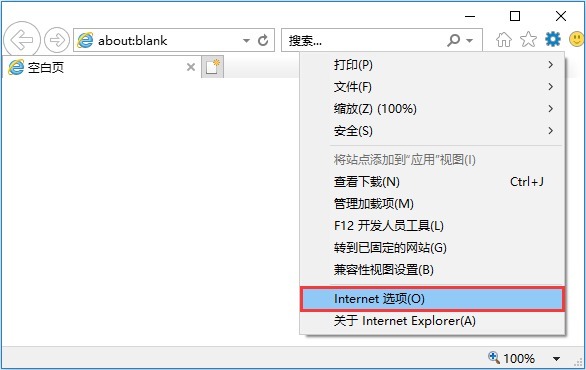 r打开IE浏览器,点击“设置”—“Internet(选项)”,如下图:
