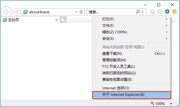 r1.打开IE浏览器,点击“设置”—“关于Internet Explorer(A)”按钮,如下图: