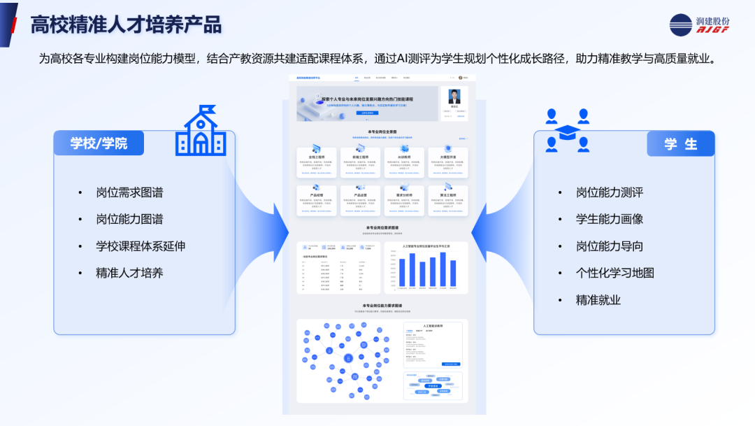 该方案创新性地采用“岗位能力图谱”与“学生能力画像”双引擎驱动模式,通过构建与产业需求紧密对接的专业岗位能力模型,赋能院校优化课程体系,同时利用AI测评技术,为每位学生生成个性化能力画像与成长路径图,实现从“统一教学”到“个性化教学”的转变,最终为学生清晰规划职业发展,助力其实现高质量就业,为企业输送“入职即上手”的复合型人才。